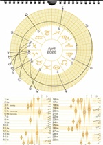 Wandkalender im Format 21 x 32 cm, 14 Blätter mit Spiralbindung und Aufhänger. Enthalten ist eine ausführliche Anleitung. Das Titelblatt zeigt den Planetenlauf für das gesamte Jahr im Überblick.